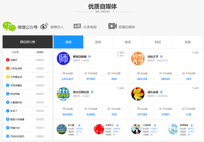 所謂自媒體廣告平臺,就是通過整合微信、微博、直播、短視頻、今日頭條等優(yōu)質(zhì)自媒體賬號資源,為電商、母嬰、美食、美妝、旅游、汽車、財經(jīng)、娛樂等各行各業(yè)的廣告主和自媒體人搭建一個交易的平臺。
