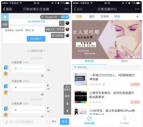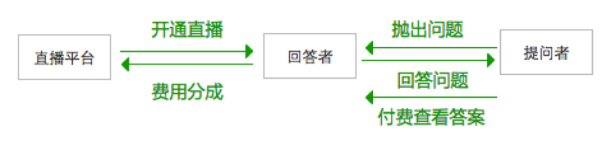 語音直播產品的商業(yè)模式之一,回答者開通直播,回答問題,提問者觀看直播,或查看答案需要付費,由平臺和回答者分成。