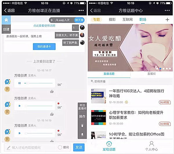 而當(dāng)前,會計、法律、IT、商務(wù)英語、人力資源管理、市場營銷、美容、餐飲等,專業(yè)的教育直播平臺很少,幾乎沒有。而事實上,這類目標人群,不僅具有一定的付費能力,而且,需求強,因為平時要上班,他們下班后就可以通過手機看直播1-2個小時來充電、提升;同時,他們有一定的知識基礎(chǔ),能自我辨別,對于在線學(xué)習(xí)也有很強的目的,會對自己負責(zé),因此,非常適合在線教育。