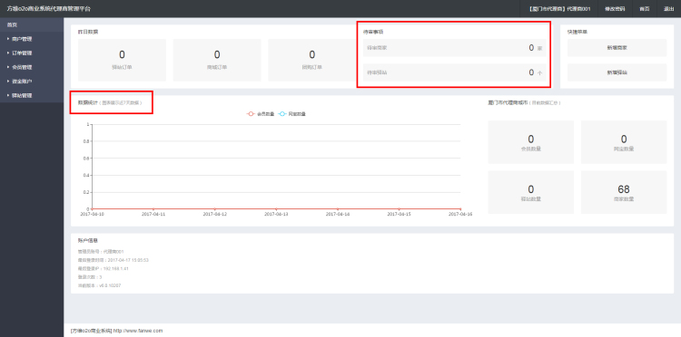 上圖可以看到,我們的城市O2O代理商首頁,大到商戶管理、訂單管理、會員管理、總控賬戶、驛站管理,小到待審事項(xiàng)、數(shù)據(jù)統(tǒng)計(jì),更有快捷操作的菜單,各種功能應(yīng)有盡有,一目了然。