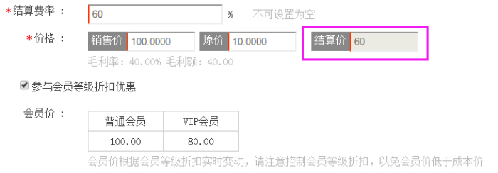 遇到這種情況,平臺(tái)可以及時(shí)調(diào)整結(jié)算費(fèi)率,假設(shè)將費(fèi)率降到60%,則平臺(tái)結(jié)算給商家60元,在vip支付80元購買此商品之后,平臺(tái)還是可以獲得利潤的。