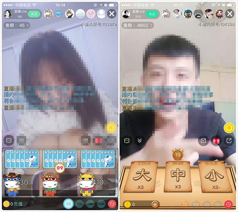 1、專門的游戲直播平臺(tái):主要以牛牛、炸金花、比大小等多種互動(dòng)游戲形式,主播和用戶直接參與;